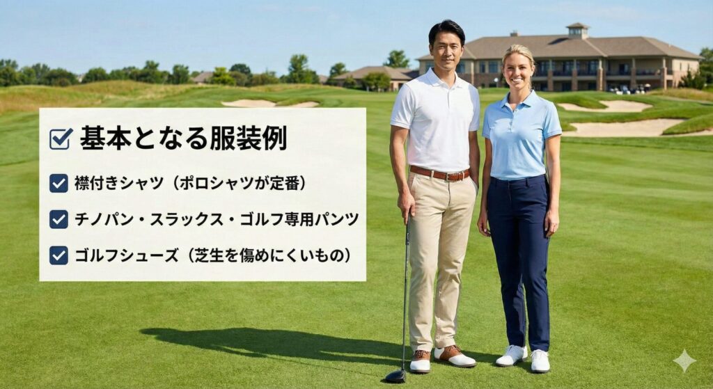 基本は「清潔感があり、ゴルフに適した服装」を意識することです。